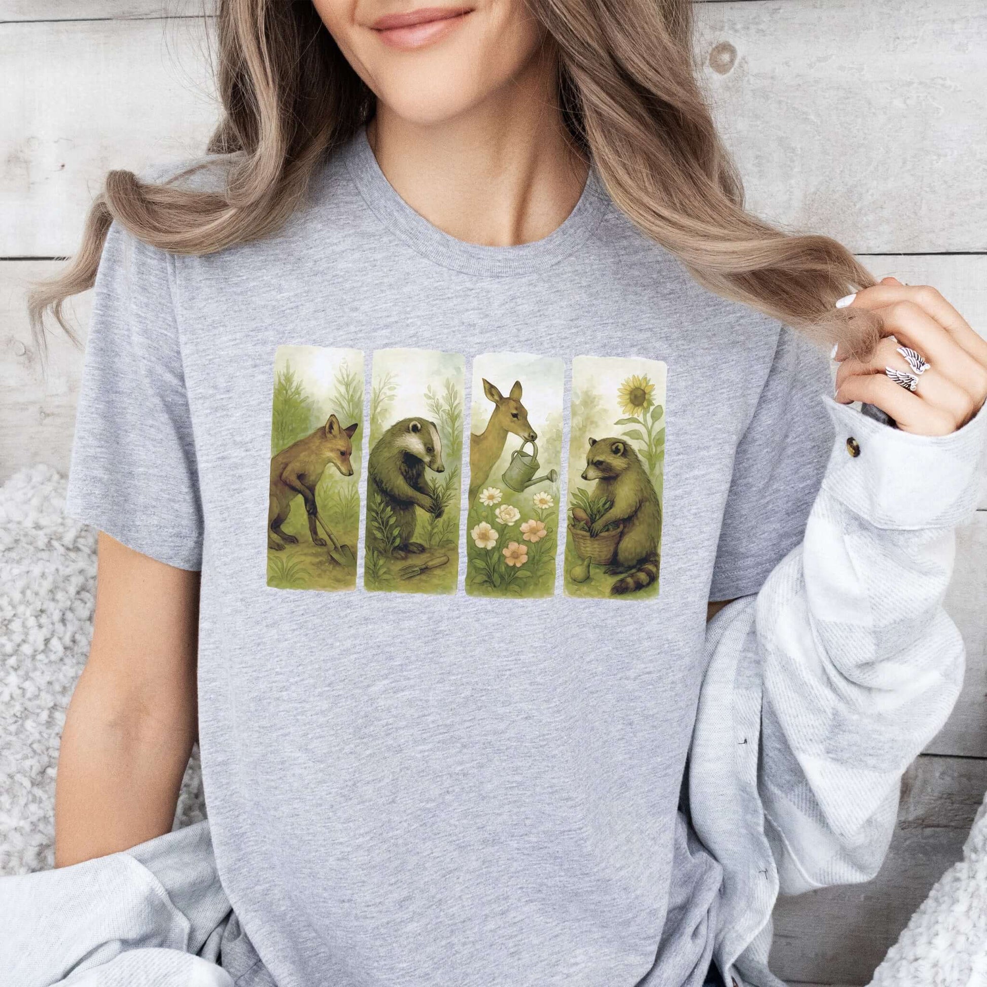 Woodland Garden Club T-Shirt – Watercolor Animal Gardening Tee