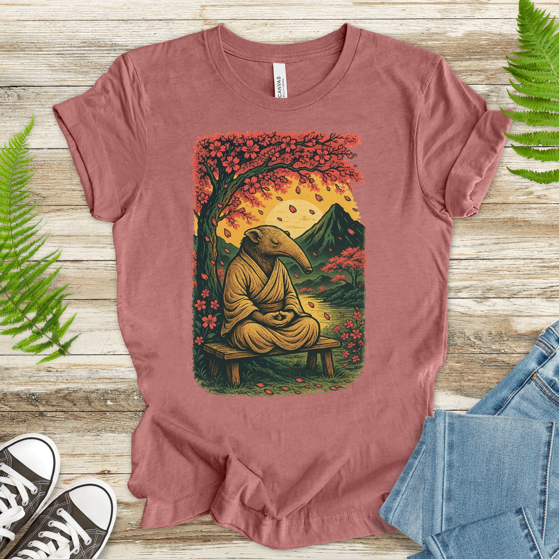 Zen Anteater T-Shirt – Meditating Animal & Cherry Blossom Tee